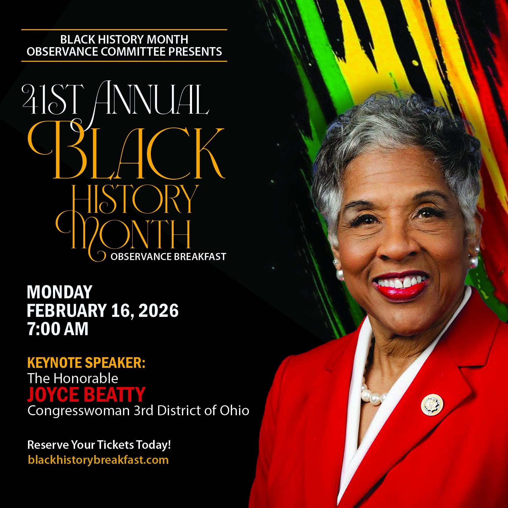 This year’s keynote speaker is Joyce Beatty, congresswoman for Ohio’s 3rd District. Roberts said her leadership and public service make her a timely and credible voice.